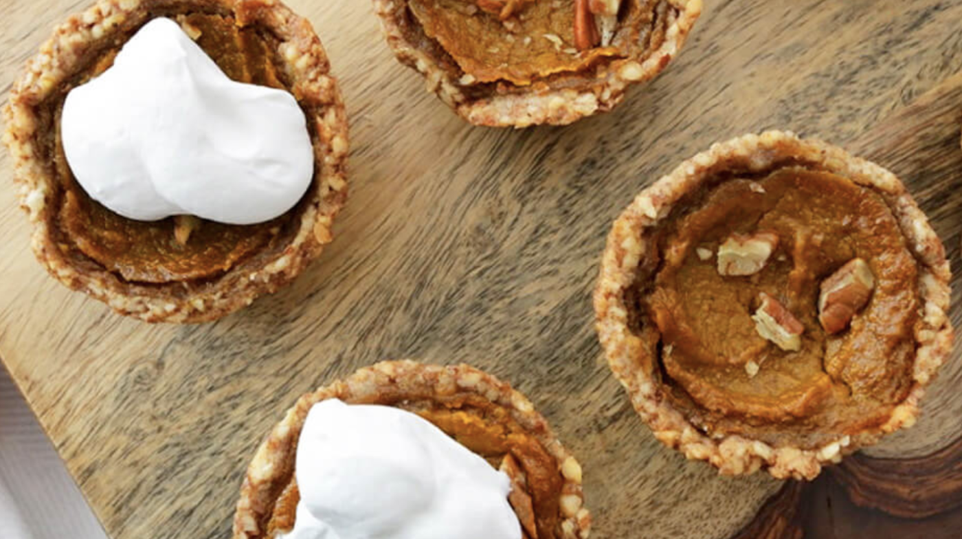 - When ready to serve, add a dollop of coconut whipped cream to each pumpkin pie tart. Enjoy!